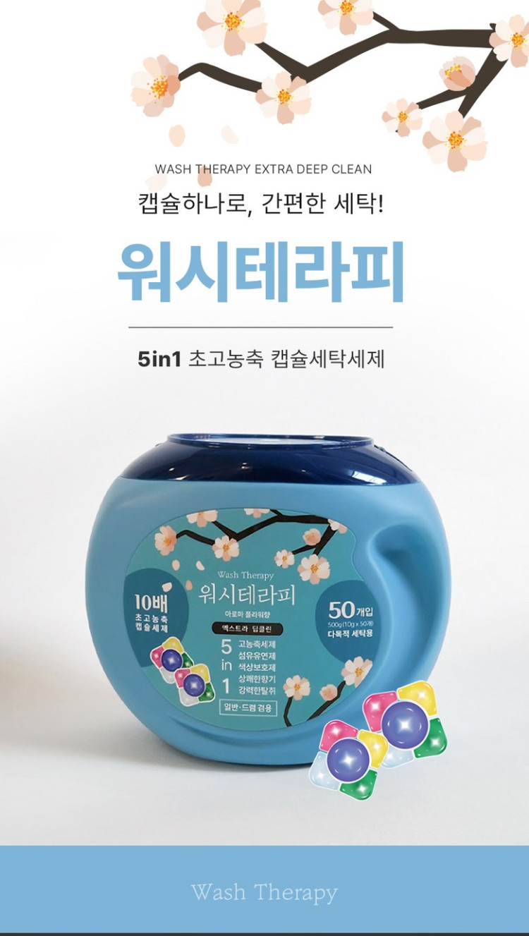 워시테라피 초고농축 10배 캡슐세탁세제 50개입 에센셜 다우니향 | 블랙픽
