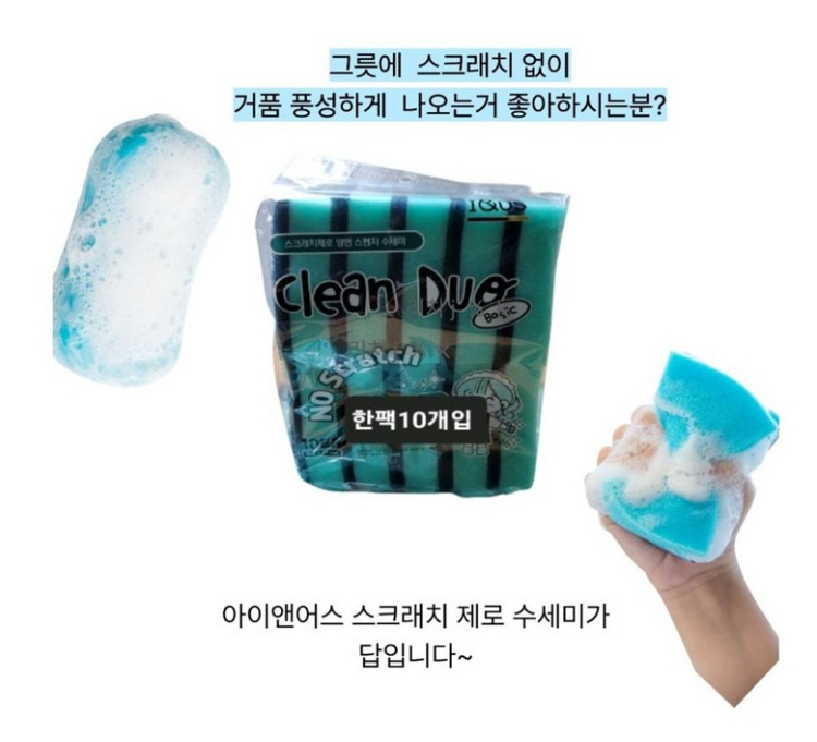 아이앤어스 제로 스크레치 스펀지 수세미 10개입 | 블랙픽